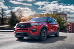 Начиная с 48 245 долларов США, Explorer ST представляет собой высокопроизводительный вариант популярного внедорожника с мощностью 400 лошадиных сил и максимальной скоростью 143 мили в час. Автомобиль вмещает семь человек и оснащен 3,0-литровым двигателем EcoBoost V-6 и крутящим моментом 415 фунт-футов. На фото: Ford Explorer ST.