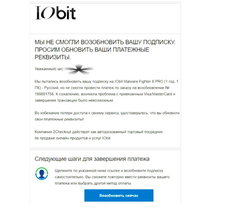 К примеру, автор этих строк несколько лет пользовался антивирусной программой «IObit». Ничего плохого не скажу, весьма эффективная прога, да ещё в красивом дизайне. И вот в конце ноября и декабре трижды получаю письма: мол, не выходит автоматически продлить ежегодную подписку. Странно, подписка сравнительно дешёвая, деньги на банковской карте есть… Предлагают вручную пройти по ссылке и заплатить самостоятельно. Ну, ладно — обычно ничего сложного. Пробую и в ответ получаю дулю: платежи из России и Беларуси не принимаем. Спрашивается, а на хрена тогда выпрашивали?