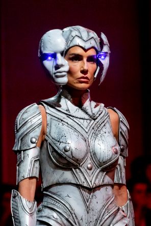 Известная бразильская актриса Дебора Секку появилась на подиуме в футуристическом образе на Неделе моды в Сан-Паулу (SPFW) во время показа модельера Дарио Миттманна. 45-летняя модель, демонстрирующая коллекцию «Голем», напоминала киборга. Ее костюм состоял из шлема, маски и других деталей, имитирующих механические органы тела. При активации механизма маски Дебора «плакала слезами», которые стекали жидкостью черного цвета, символизируя эмоции сознательного ИИ. Зрители аплодировали стоя. Не обошлось и без деликатной «изюминки» наряда, объединившего реальное и чувственное содержание с технологиями, которые все чаще встречаются в современном обществе.