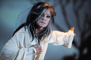 На фото: актриса Вера Алентова (Кормилица) в сцене из спектакля «Федра» французского режиссера Хемлеба Лукаса в Московском драматическом театре им. А.С. Пушкина, 2009 год.