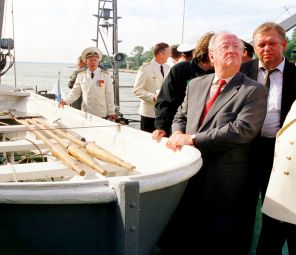На фото: председатель правления Центробанка Виктор Геращенко был среди лиц, сопровождающих президента РФ Владимира Путина на праздновании Дня Военно-морского флота в Балтийске Калининградской области, 2000 год. Цитата Виктора Геращенко: «Мы все переживем. Мы — народ терпеливый».