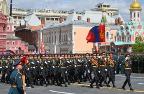 По Красной площади в парадной колонне прошли расчеты Республики Беларусь, Азербайджана, военные 37-й десантно-штурмовой бригады имени генерала Панфилова Казахстана, а также Мьянмы, Вьетнама, Таджикистана и Монголии (на фото).