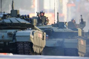 На фото: танк Т-90М «Прорыв» по пути на парад Победы на Красной площади, посвященный 80-й годовщине Победы в Великой Отечественной войне.