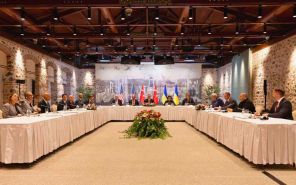 Украинская делегация во главе с министром обороны Украины Рустемом Умеровым встретилась утром сначала с турецкими и американскими коллегами, а затем с российской делегацией. Половина украинской делегации была одета в камуфляжную форму, сидя за широким белым столом прямо напротив своих российских коллег, которые были в костюмах, обращают внимание СМИ.