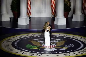 На фото: президент Дональд Трамп танцует с женой Меланией на балу Starlight 20 января 2025 года в Вашингтоне, округ Колумбия.