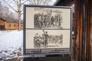 Лозунг «Arbeit macht frei» («Труд освобождает»), висевший над входом в лагерь, стал жестоким ироничным символом обмана, поскольку ни один из заключенных не имел возможности покинуть лагерь живым.