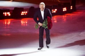 Тогда к удивлению зрителей, из зала на лед на коньках, с букетом красных роз вышел 57-летний Дмитрий Песков. Под песню «А он мне нравится» с Навкой политик исполнил небольшой танец и сделал признание в любви.