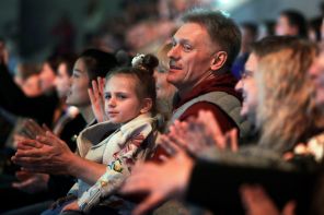 На фото: пресс-секретарь президента РФ Дмитрий Песков и его дочь Надежда на трибуне Малой спортивной арены «Лужники» во время ледового шоу «Илья Авербух. 15 лет успеха», 2019 год.