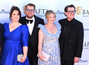 На фото: Рут Джонс, Джеймс Корден, Джоанна Пейдж и Мэтью Хорн на церемонии вручения телевизионной премии BAFTA. Элизабет Джонс — валлийская актриса, комик, писатель и продюсер. Она стала соавтором сценария и снялась в получившем признание критиков ситкоме BBC «Гэвин и Стейси», за который получила премию BAFTA за «Лучшую женскую комедийную роль» в 2025 году.