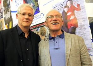 На фото: голливудский сценарист и консультант Джон Труби, автор бестселлера «22 шага к Созданию Великого Сценария», и российский кинорежиссер Александр Митта (слева направо) перед началом пресс-конференции в Доме Кино, 2013 год.