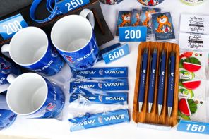 На фото: фирменная продукция New Wave Hall, где пройдет открытие международного музыкального конкурса «Новая волна».