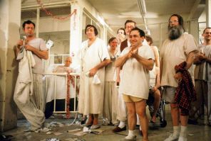 «У кого из вас, сумасшедших, есть хоть капля смелости?» — спрашивает Макмерфи, буйный новый пациент больницы, тем самым настраивая себя и свою паству на столкновение с властями в целом и с Рэтчед в частности. Комедия взрывается, как фейерверк. Драматичные сцены обрушиваются с силой молота. Макмёрфи ненавидит бюрократию, обрушивается на регламент и снабжает пациентов дозой неприкрытого мачизма. Мужчины — «кастрированные развалины», которым нужно заново обрести свою силу. Женщины — либо хихикающие секс-работницы, либо «кастраты-наседки». Но фильм не лишён нюансов и ощущения напряжённой сложности жизни. Важно отметить, что игра Луизы Флетчер в роли Рэтчед гарантирует, что монстр Кизи остаётся человеком. Она — измученный профессионал и такой же представитель своего времени, как и Макмерфи. Рэтчед в меньшинстве, и отделение находится в осаде. Неудивительно, что в конечном счёте она прибегает к помощи джамп-лидеров.