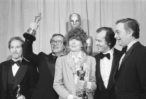 На фото: Ричард Дрейфусс, Чарльз Джофф, Дайан Китон, Джек Николсон и Джек Роллинс на вручении ежегодной премии «Оскар», 1978 год. Дрейфус и Китон получили награду за звание лучшего актера и актрисы. Иоффе и Роллинз были продюсерами лучшей картины «Энни Холл», а Николсон был ведущим.
