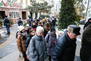 На фото: люди во время церемонии прощания с ректором Школы-студии МХАТ, заслуженным артистом РФ Игорем Золотовицким в МХТ имени А.П. Чехова. Игорь Золотовицкий ушел из жизни утром 14 января 2026 года, ему было 64 года.