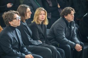 На фото: родственники на церемонии прощания с членом Академии Российского телевидения Александром Олейниковым в траурном зале Троекуровского кладбища.
