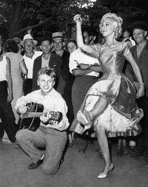 На фото: британский музыкант Томми Стил и актриса Карол Лесли танцуют на Красной площади в Москве во время 1-го Московского международного кинофестиваля, 1959 год.