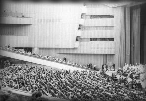 Пожалуй, самым ярким и скандальным фестивалем того времени стал III ММКФ 1963 года, председателем жюри которого был режиссер Григорий Чухрай. На фото: зал Кремлевского дворца съездов.