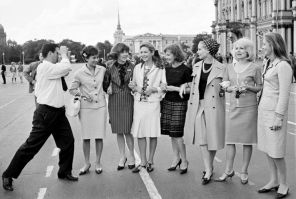На фото: алжирская актриса Самия Денден, советская актриса Лариса Ивановна Голубкина, французская актриса Одиль Версуа, урожденная Татьяна Владимировна Полякова-Байдарова, советская актриса Ирина Игоревна Губанова, французская актриса Женевьев Паж, советская актриса Эве Йоханнесовна Киви и член жюри французская актриса Марина Влади, урожденная Екатерина Марина Владимировна Полякова-Байдарова, (слева направо) на Дворцовой площади во время поездки участников IV Московского международного кинофестиваля на экскурсию в город на Неве в рамках культурной программы кинофорума, Ленинград, 1965 год.