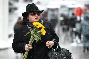На фото: во время прощания с телеведущим Алексеем Пимановым на Троекуровском кладбище в Москве, 2026 год.