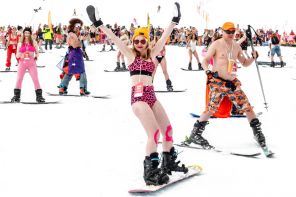 Свадебный, карнавальный, морской, ночной, совершенно летний, пижамный, — спуски на любой вкус и костюм. Каждый день — массовые креативные катания. На горнолыжном курорте Шерегеш состоялся ежегодный карнавальный фестиваль «Grelka Fest 2026».