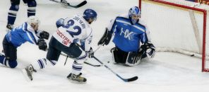 На фото: гол Овечкина во время игры «Динамо» — «Нефтехимик» — 4:2, ПЛЕЙ-ОФФ. ¼, 2005 год, Москва.
