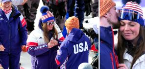 Вишенка на торте? Джонсон покинет Кортину еще с одной наградой, на этот раз на пальце. Она обручилась со своим парнем, который сделал ей предложение в горах после супергигантской гонки Джонсон. На фото: американская горнолыжница Бризи Джонсон целуется со своим женихом Коннором Уоткинсом во время интервью после того, как он сделал ей предложение в конце соревнований по горнолыжному супергиганту среди женщин на зимних Олимпийских играх 2026 года в Кортине-д'Ампеццо, Италия. Джонсон и Уоткинс познакомились в приложении для знакомств Bumble, а на коробочке для ее обручального кольца была цитата из песни певицы Тейлор Свифт"The Alchemy": «Честно говоря, кто мы такие, чтобы бороться с алхимией?»