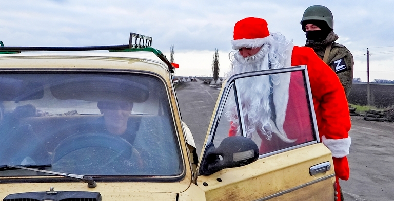«Знаете как, русское ницшеанство, все что нас не убивает, делает нас сильнее. Путается навигатор, ну сами понимаете, БПЛА и все остальное, мы выехали чуть ли не через Марьинку, далее через Семеновку, машины скользят по льду вообще <…> Ну позитивчик, зима, Новый год, исполнение всех желаний», — рассказал актер.