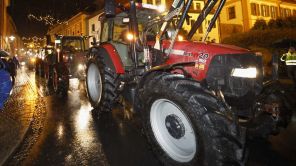 На фото: многочисленные тракторы и тягачи проходят парадом по городу во время демонстрации фермеров. Фермеры демонстрируют свое присутствие из-за текущих планов федерального правительства в области сельского хозяйства в Германии