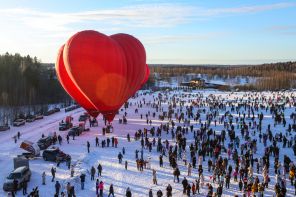 На фото: воздушные шары во время полета в рамках «Фестиваля сердец», Дмитров, Московская область.