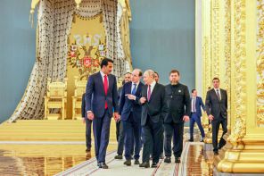 На фото: президент РФ Владимир Путин и эмир Катара Тамим бен Хамад Аль Тани (на первом плане справа налево) во время встречи в Кремле, Москва, Россия.