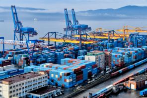 На фото: контейнерный терминал в торговом морском порту в тихоокеанском городе Владивосток, к востоку от Москвы, Россия.