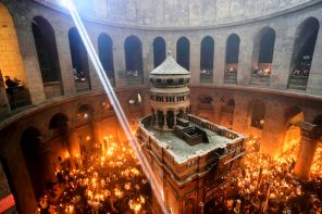 На фото: верующие в храме Гроба Господня во время схождения Благодатного огня накануне православной Пасхи, Иерусалим, Израиль.
