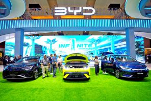 На фото: стенд BYD на международном автосалоне в Джакарте.