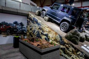 На фото: демонстрационный стенд с автомобилем Suzuki Jimny.
