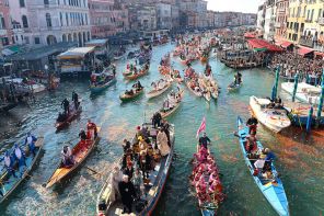 На фото: шествие карнавальных лодок по Большому каналу. Чтобы принять участие в карнавальных торжествах, в город стекаются около трех миллионов туристов со всего мира.