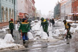 На фото: работники коммунальных служб во время расчистки снега в центре Нижнего Новогорода, Россия.