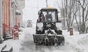На фото: уборка снега на улице Мурманска, Россия, во время снегопада.
