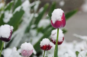 На фото: снег покрыл тюльпаны на клумбе вдоль дороги на Хэппи-Каньон, юго-восточный Денвер, США.