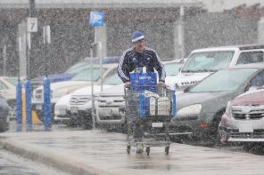 Мокрый снег, сопровождающийся порывами ветра, выпал в Москве в ночь на понедельник, 27 апреля.
